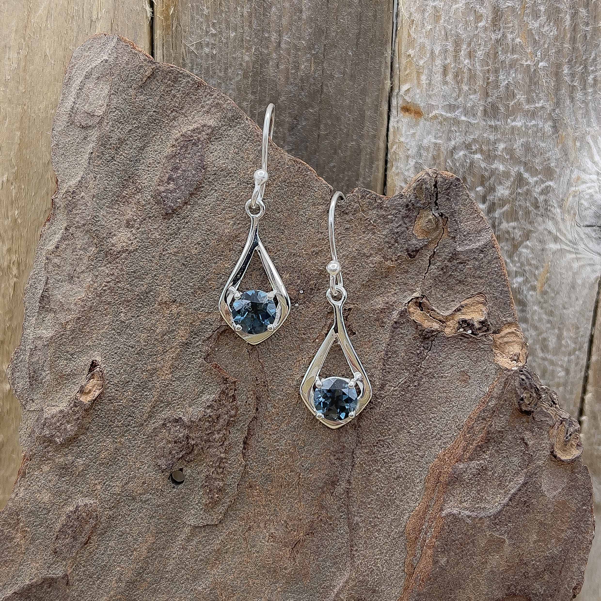 London Blue Solitaire Dangle Earrings