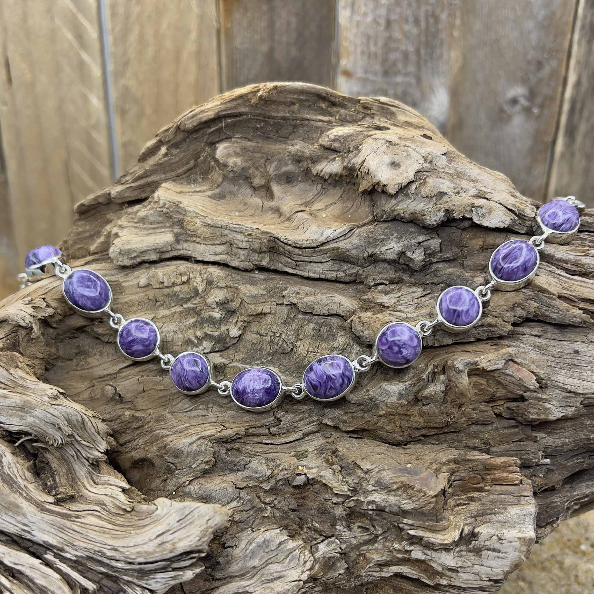 Alternating ovals and circles of richly patterned charoite create this elegant sterling bracelet. With an adjustable length from 8¼" to 7", it’s designed for both beauty and comfort.