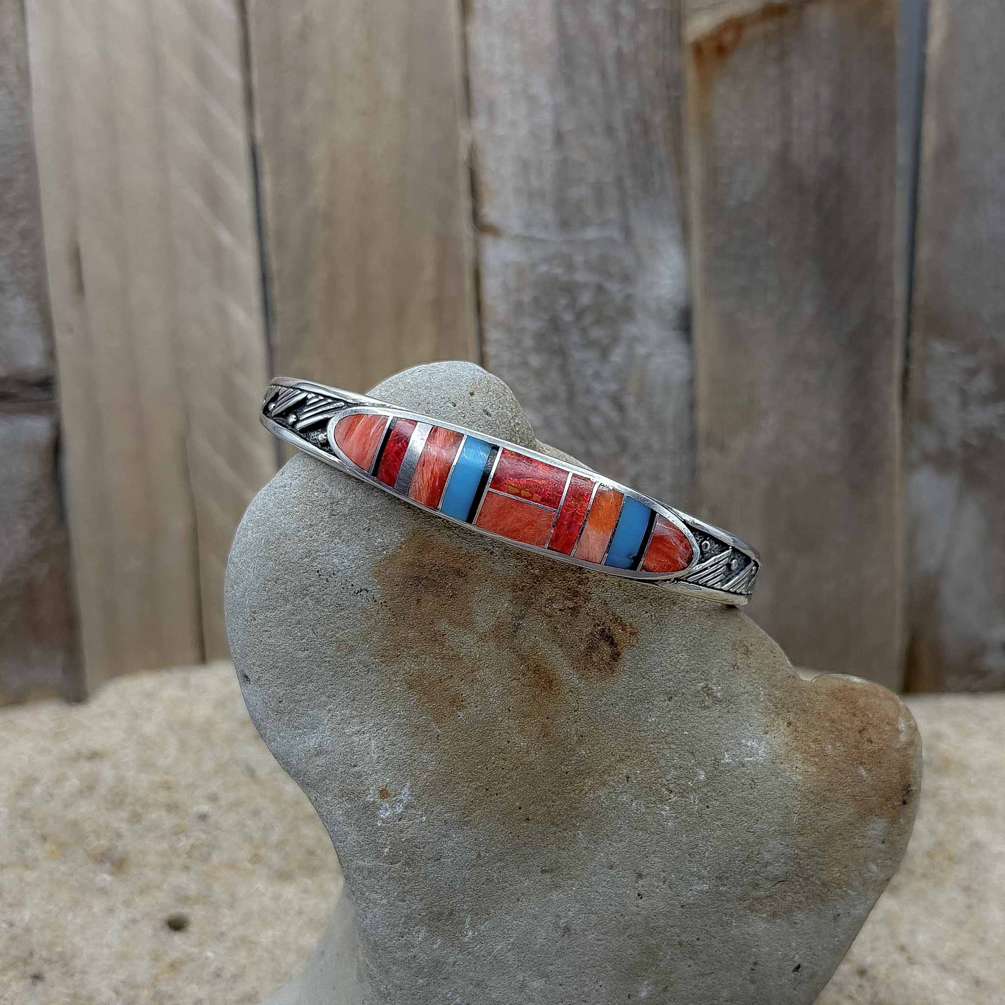 Native American Spiny Oyster Inlaid Cuff Bracelet