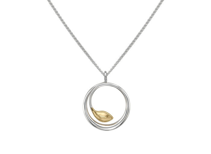A nature-lover’s dream, the Be-Leaf pendant features a gently curved circle cradling a hand-forged leaf in sterling silver with 14K gold accents. Necklace length is 18" (as listed). Long requested companion to our Be-Leaf earrings and bracelet, this pendant with its curved hand-forged leaf is also lovely on its own!