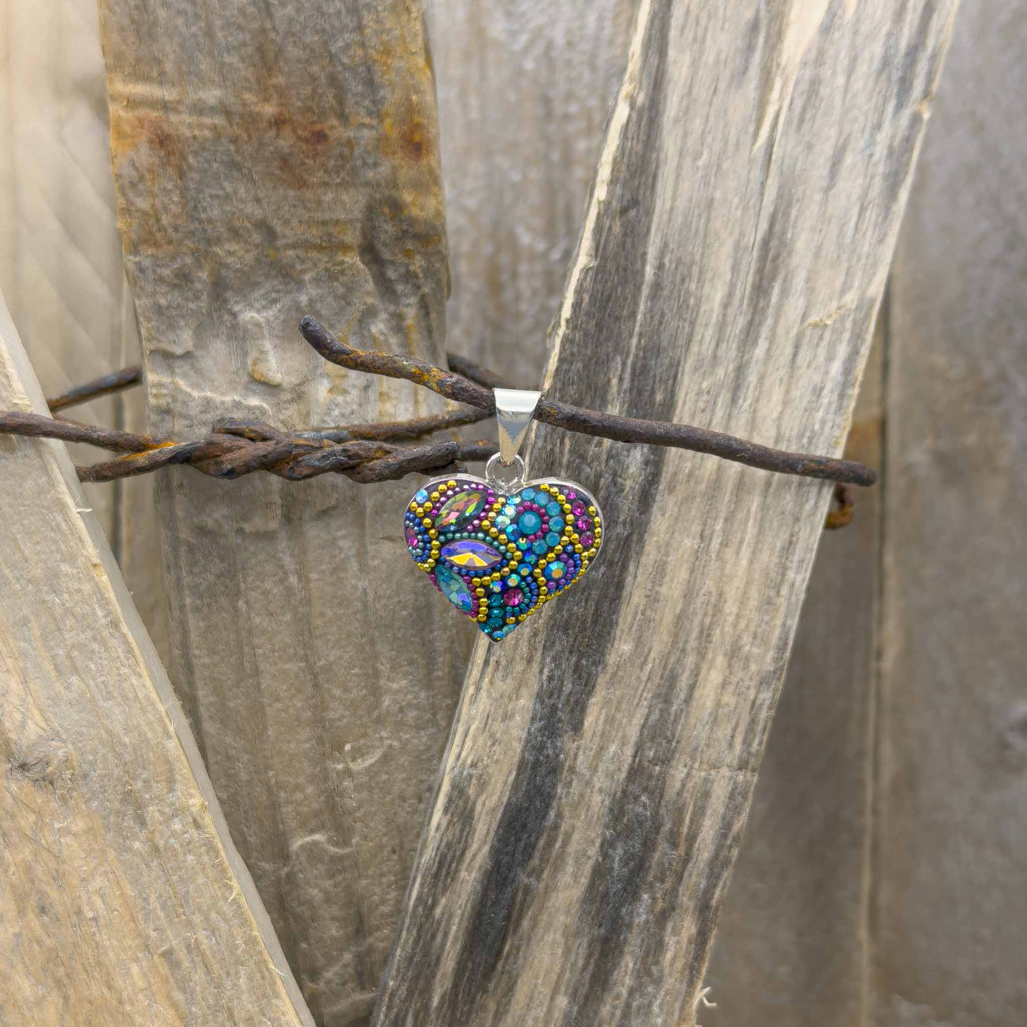 Artisan Handset Crystals Rainbow OffSet Square Pendant