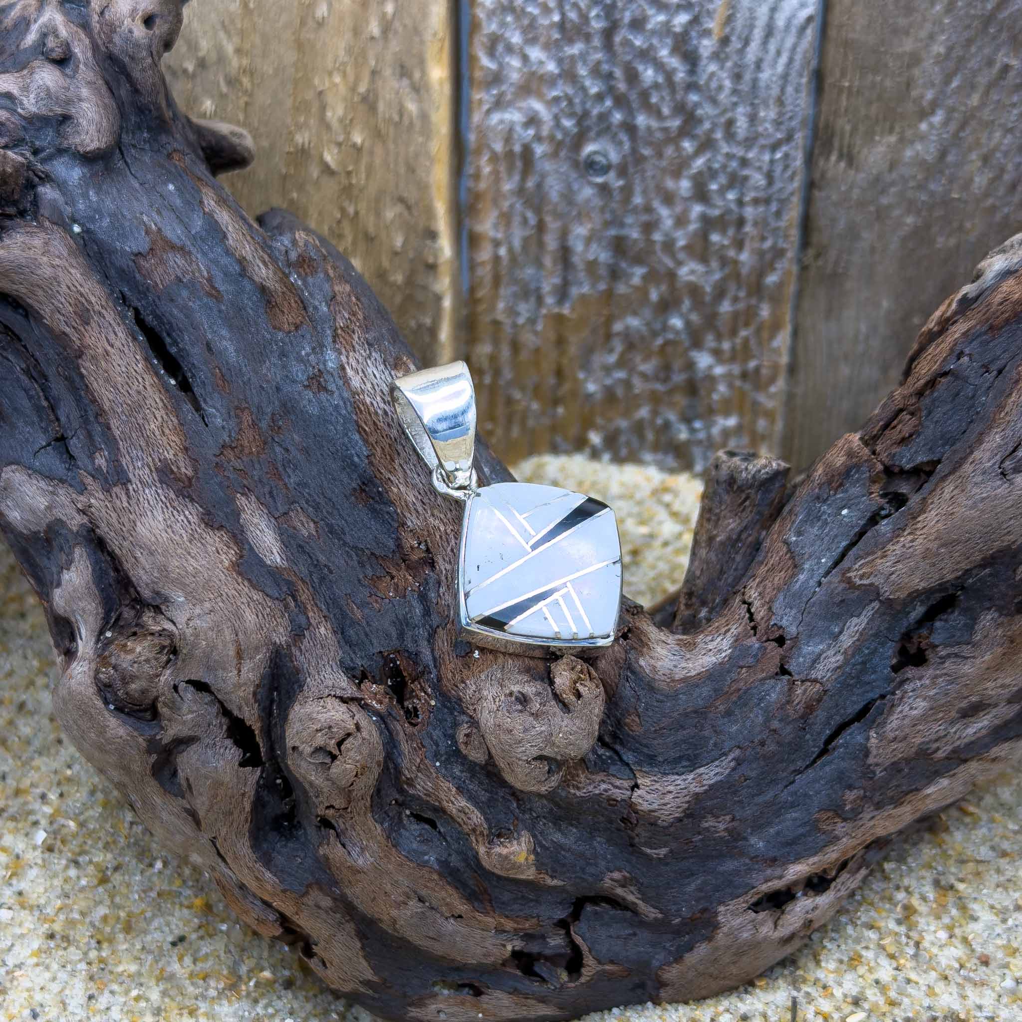 Native American Reversible Square Black & White Inlay Pendant