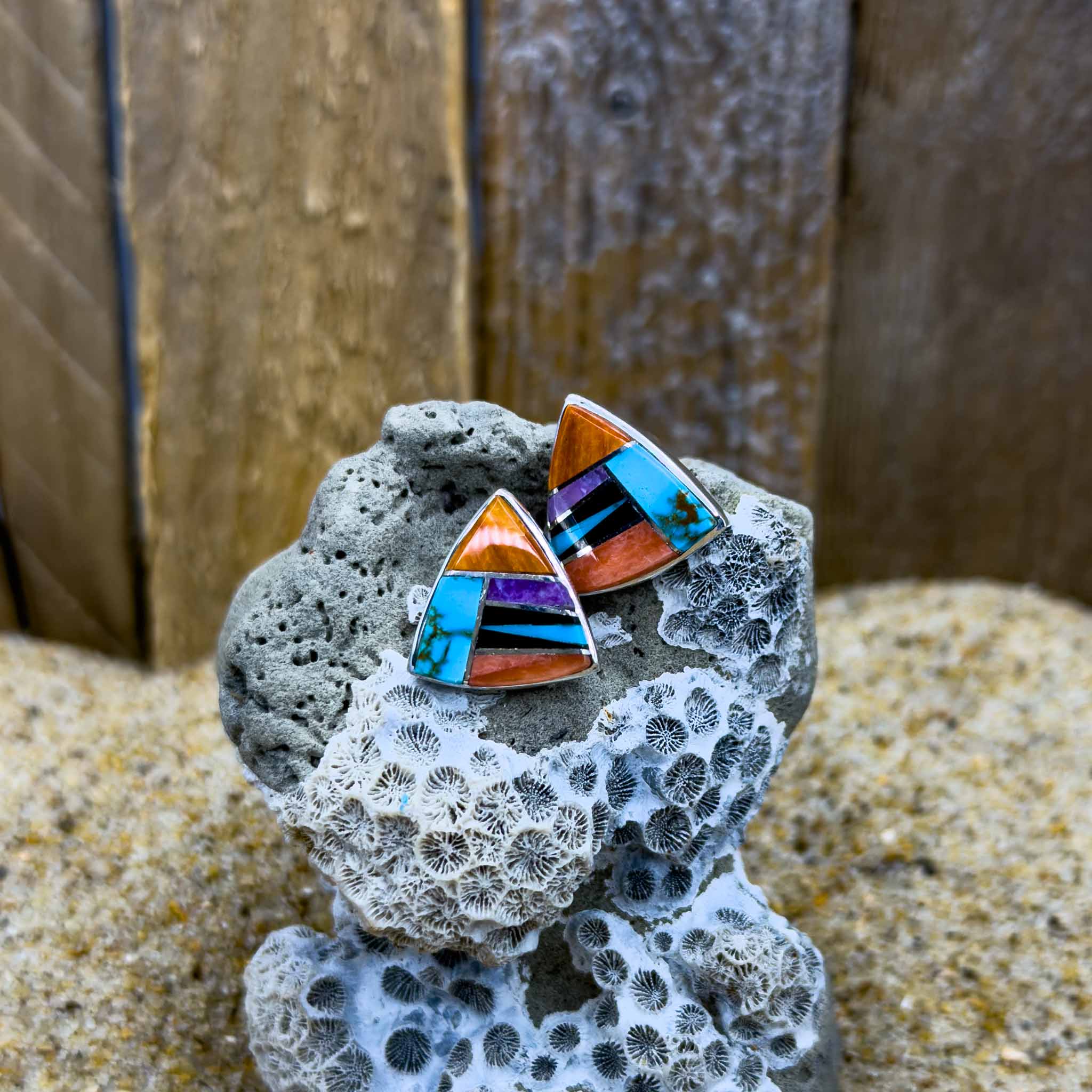 Native American Spiny Oyster Inlay Triangle Earrings