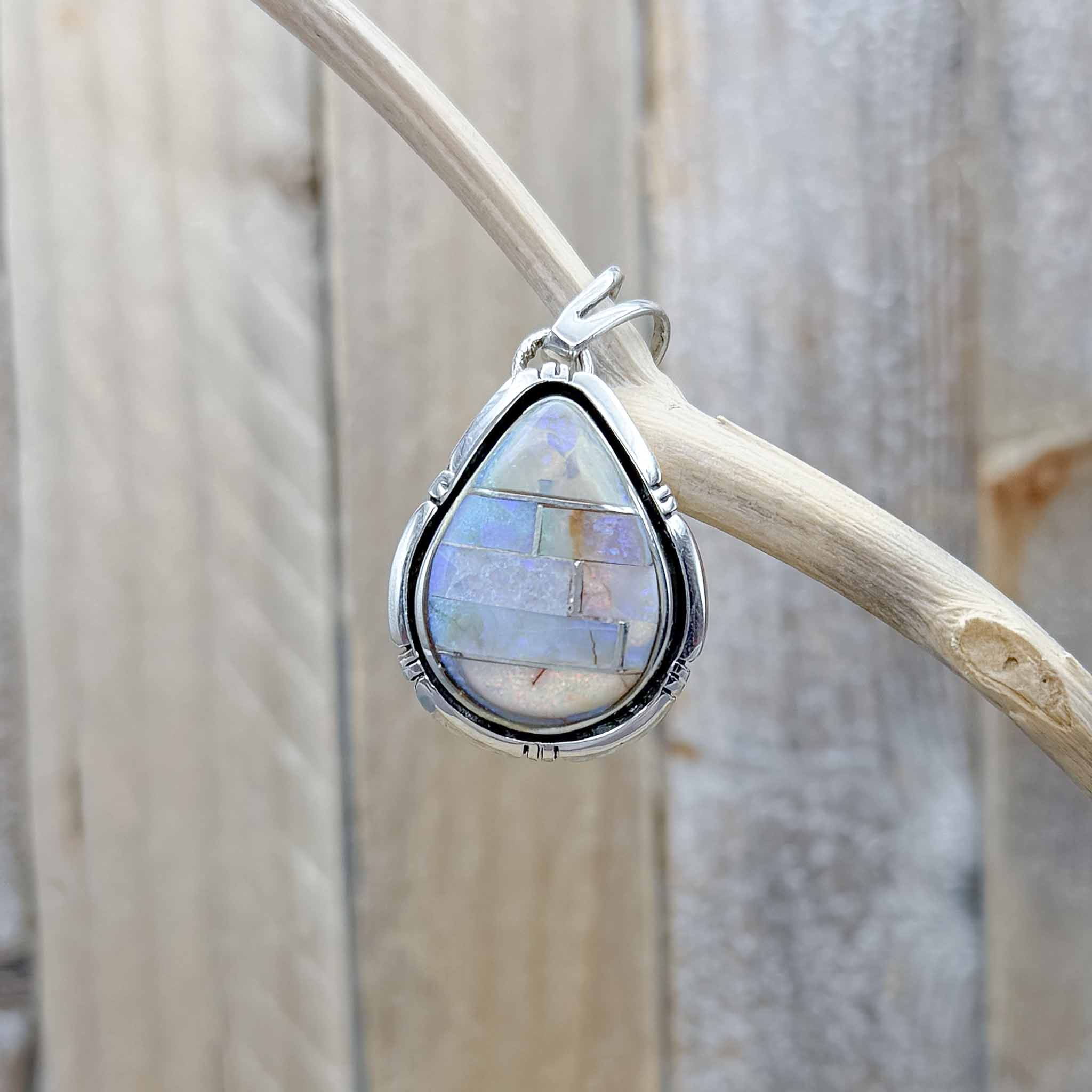 Spiderweb Opal Petite Rectangle Keystone Pendant